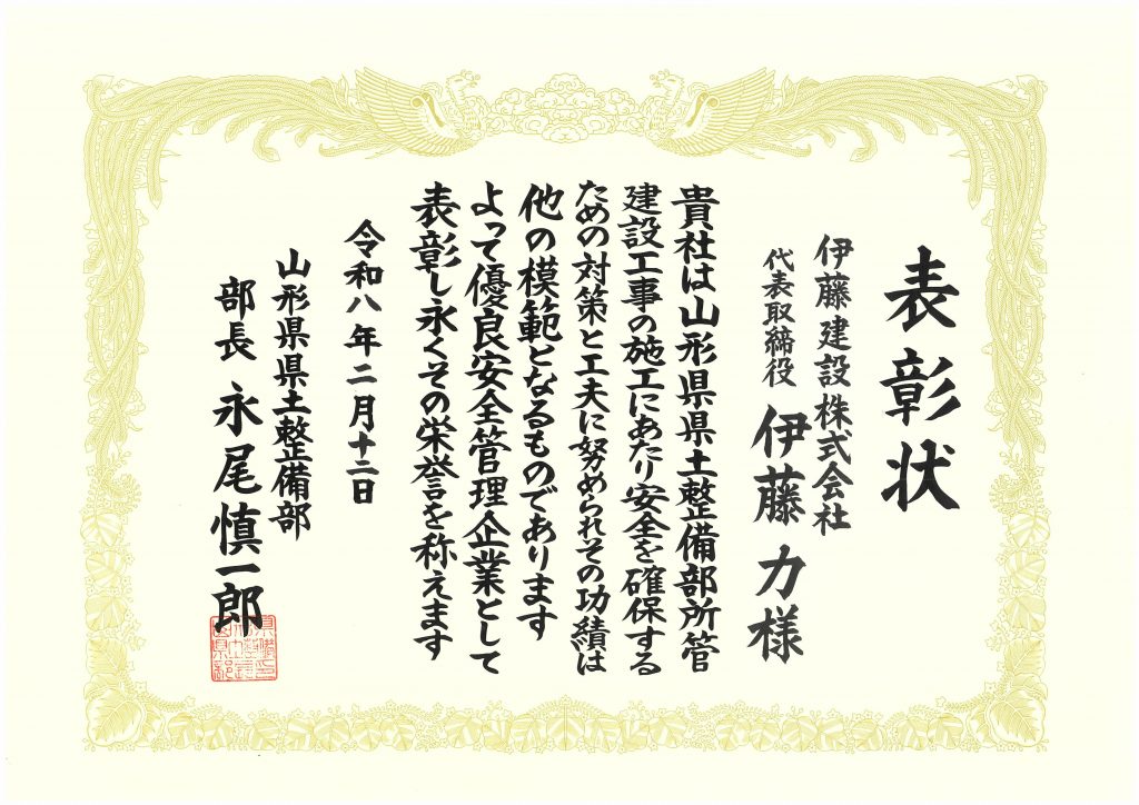 2026年2月13日 / 最終更新日時 : 2026年2月13日 管理者 News & Information 山形県優良安全管理企業表彰を受賞しました 建設業においては、働き方改革、生産性の向上及び担い手の確保が喫緊の課題であり、県として建設業の取り組みを後押しするため、「建設業界の安全性のPRを目的とした安全管理表彰」として令和5年度に創設されました。